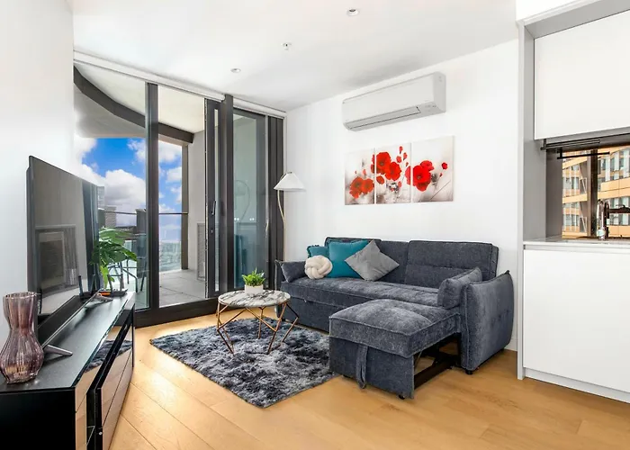 Das The Quarter Elite 1Br Resort-Style Amenities Melbourne City bietet ein Hallenbad und eine Terrasse und liegt im Bezirk Collins Street, etwa 19 Gehminuten vom Australian Centre for the Moving Image entfernt. In diesem Apartment, das 450 m vom Melbourne Aquarium liegt, finden die Gäste ein Tauchbecken, eine Sauna und ein Hallenbad.